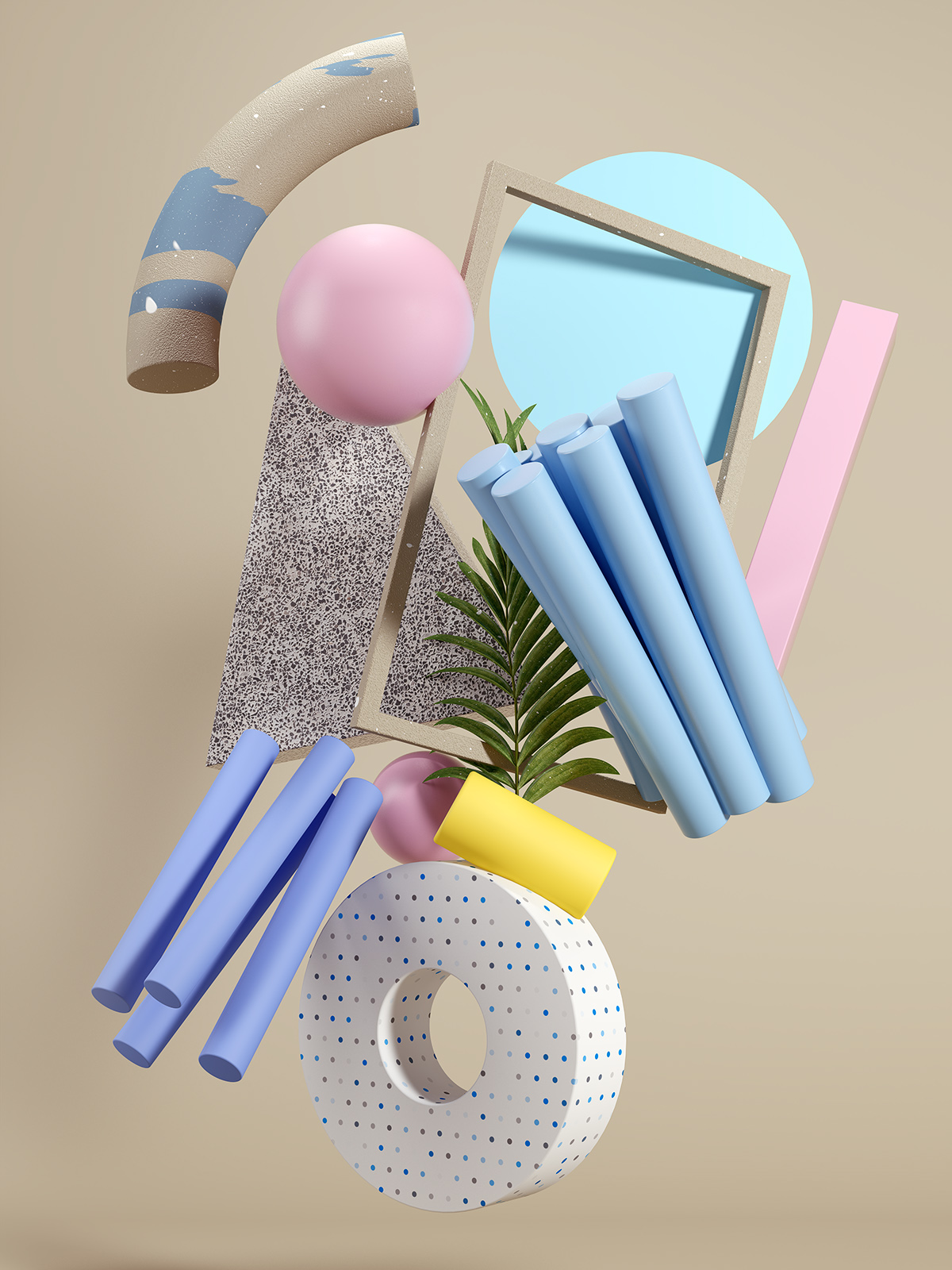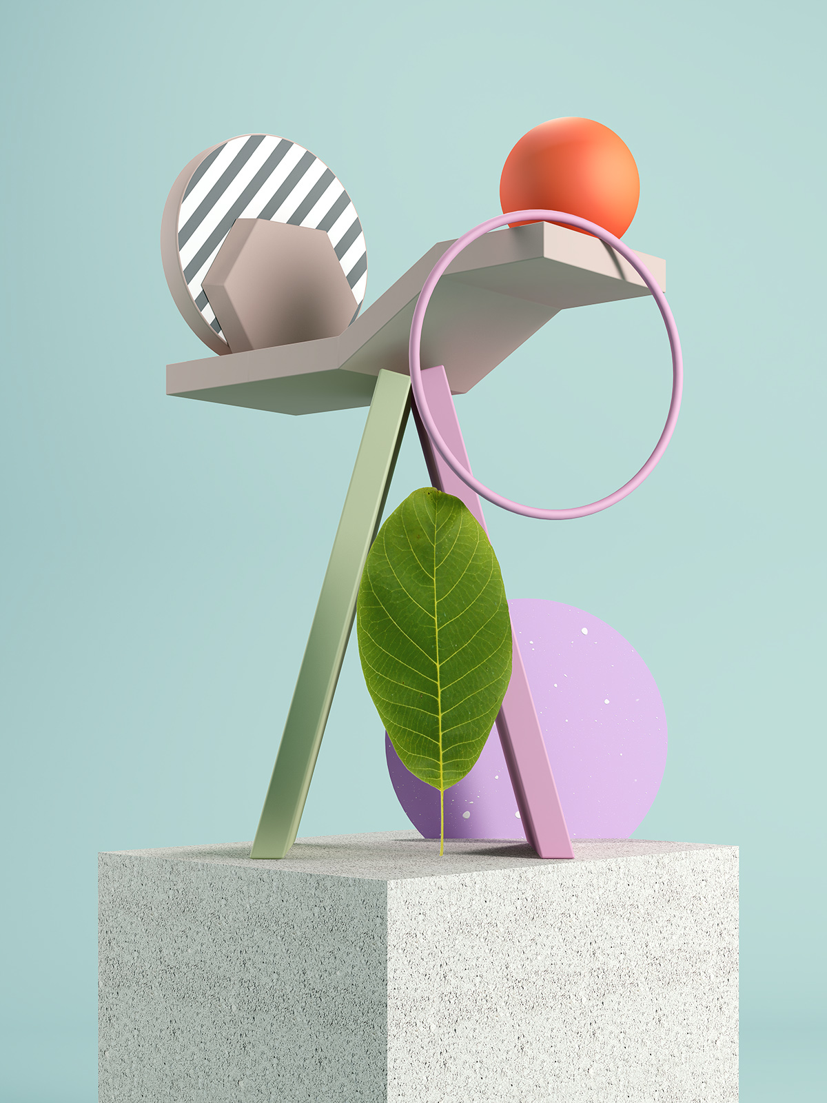 Exploration of different conceptual and design stages. Simple geometric forms, colors and textures are all combined into one to achieve good visual communication. The project is focused on real-world objects in a digital environment like leaves in a digital surrounding.